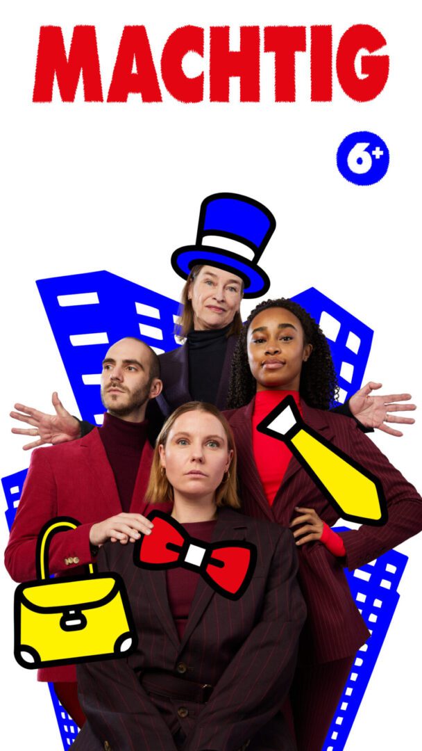 Wat is het? Een pak? Een haviksneus? Een grote kwijlende hond bij de voeten? Een aktetas in de hand? Een zonnebril? Een strenge blik? Hoe ziet een baas eruit? Waaraan kan je een machthebber herkennen? En waar vind je ze? Nou kijk maar eens omhoog. Daar zijn ze. Ze torenen boven je uit. Je kijkt zo recht hun harige neusgaten in. Je ziet hun vermoeide kraalogen en hun boze grote mond. Maar moeten bazen altijd schreeuwen? En met servies gooien zoals chefs in keukens? Of bestaan er ook dansende directeuren? Met zachte regels? Die neuriënd rondlopen in een joggingpak van fluffy dons? MACHTIG is een voorstelling vol reusachtige verhalen over machtige mensen, waardeloze onderkruipsels en stille fantastische helden.