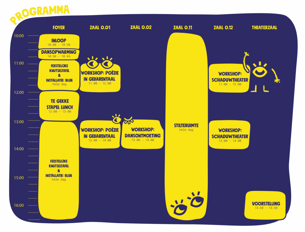Meld je aan voor het feest, de workshops en/of de voorstelling via het aanmeldformulier hieronder.