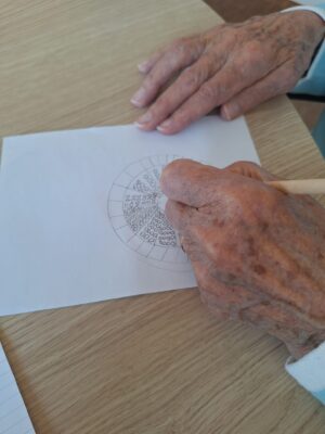 "Samen met een bewoner zijn we onze eigen mandala gaan ontwerpen." Een mandala ontwerpen is een van de Klein Kunstjes.