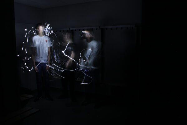 1e en 2e klassers van Veurs Voorburg maken magische lichtkunst met glowsticks en fotografie tijdens onze workshop ‘Lichtspel in de Duisternis’, een creatieve kennismaking met techniek, verbeelding en samenwerken in het donker.
