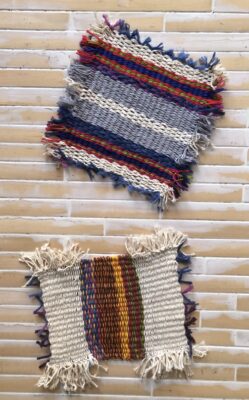 "Na een introductie over Ikat (geweven stof uit Indonesië) gingen we zelf aan de slag met weven, met dit als mijn resultaat!" Harold